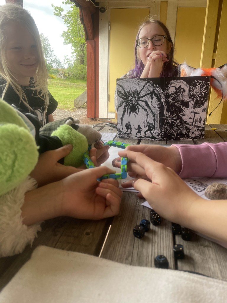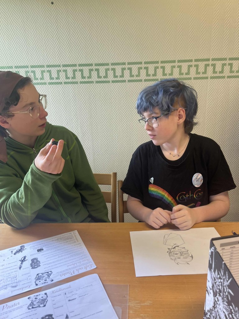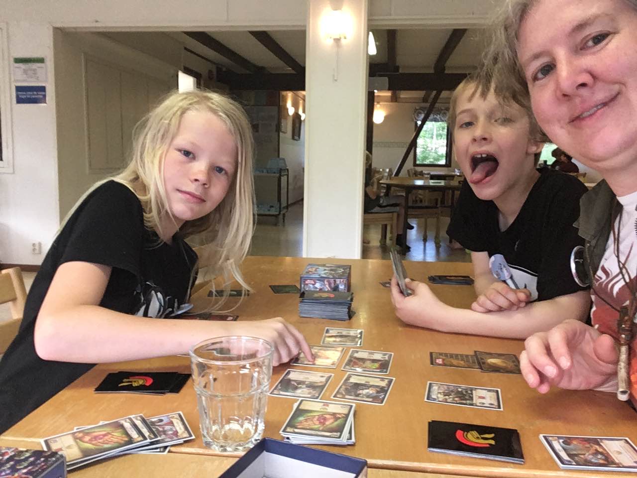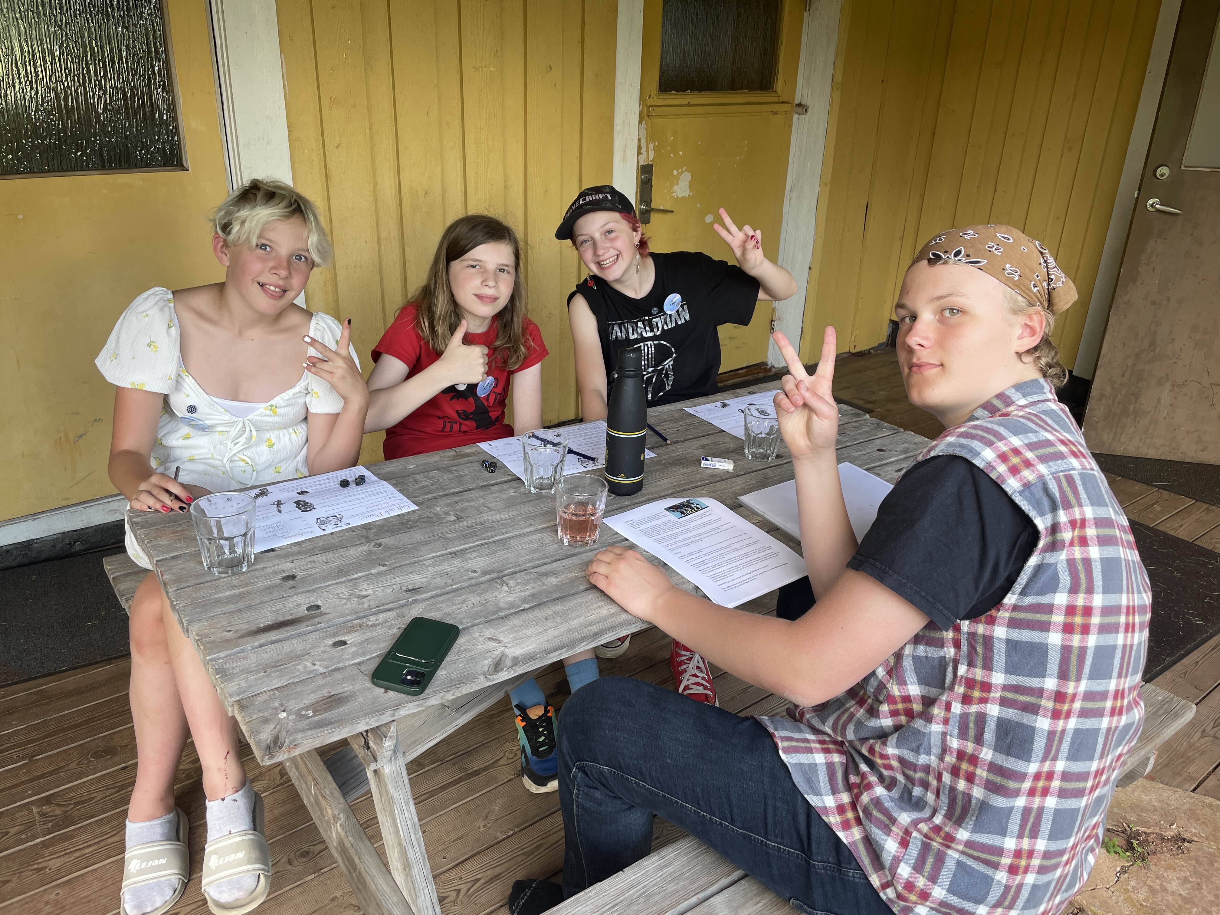 All barn och ungdomar har åkt hem, men inte utan de fina gåvor vi fått av Helmgast och Borås Spelkonvent. Här ser vi både ungdomsledare och deltagare bli glada och nöjda över koventsbiljett och rollspel: